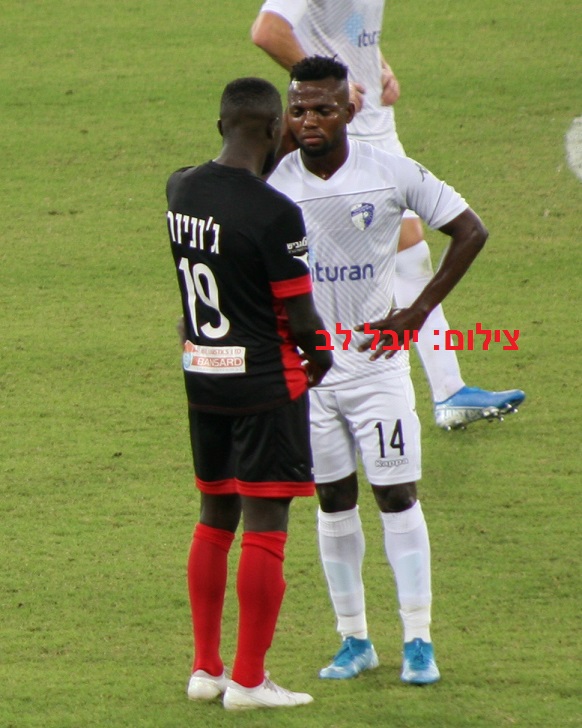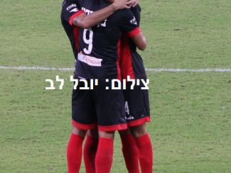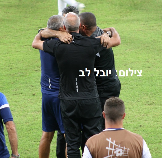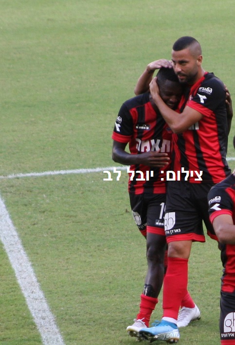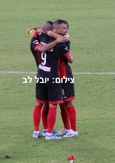 קפילוטו (מימין) חוגג את הניצחון עם נס זמיר כובש צמד השערים. (צילום: יובל לב)