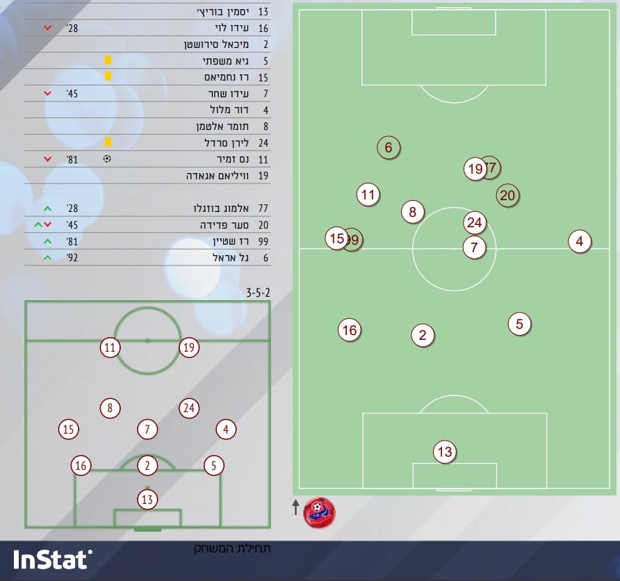 3. מערך: סילבס עלה במערך של 5-3-2, אך לאור החולשה הכללית של הקבוצה ו-3(!) טעויות מפתח תוך כעשרים דקות של עידו לוי
