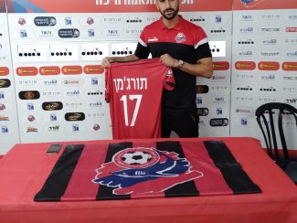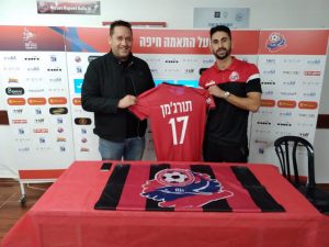 אלון תורג'מן עם חולצתו החדשה. (צילום: הפועל חיפה)