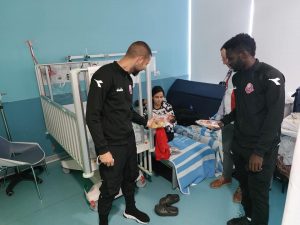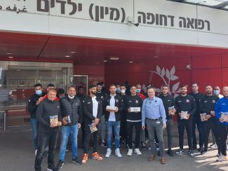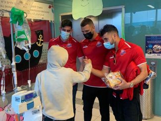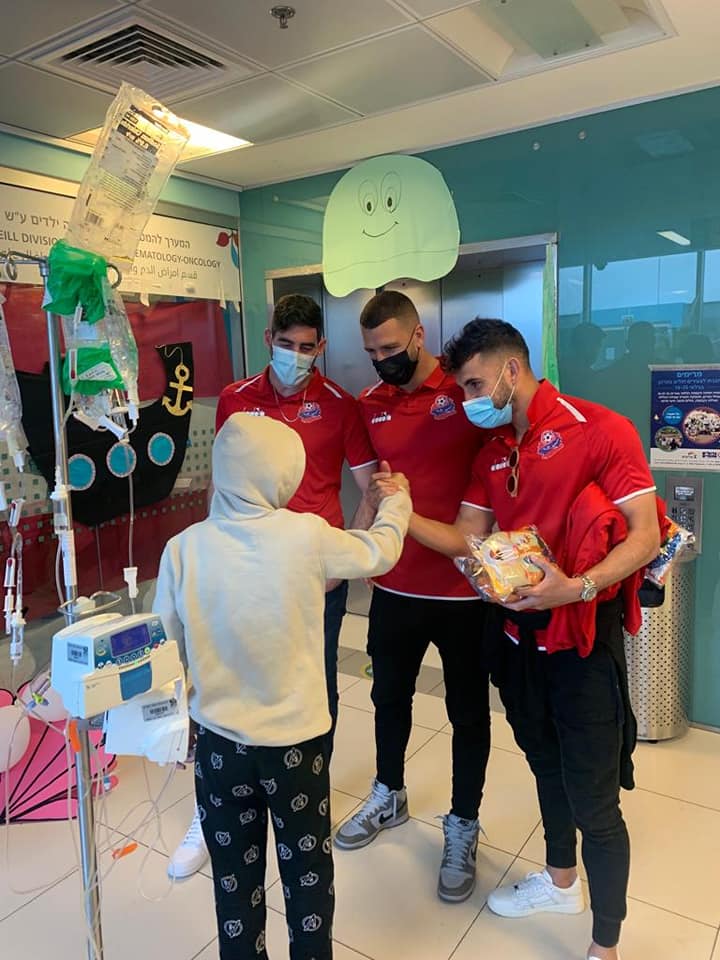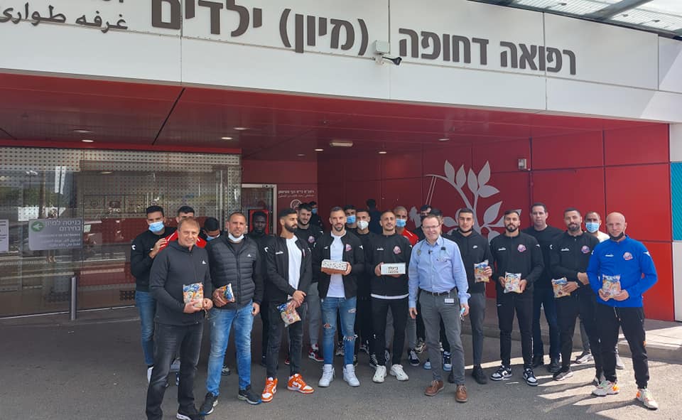 שחקני הפועל חיפה ביקרו במחלקת הילדים של בית החולים ע"ש רות רפפורט וחילקו משלוחי מנות.