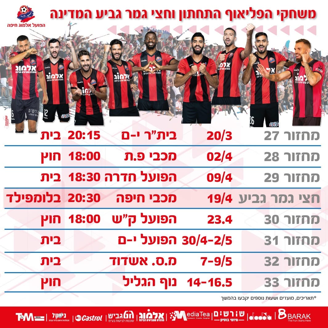 לפניכם לוח משחקי הפליאוף התחתון וחצי גמר גביע המדינה של הפועל חיפה: