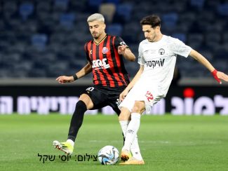 ביטון (מימין) עם סרט הקפטן במדי הפועל חיפה נגד הפועל באר שבע. (צילום: יוסי שקל).