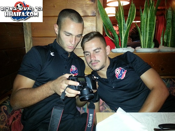 שחקני הקבוצה מעיינים בתמונות מהמשחק (צילום: יובל לב)