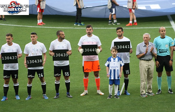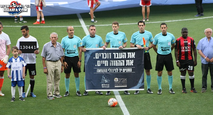 טקס לפני המשחק בשיתוף עמותת אדיב לסיוע ניצולי השואה. (צילום: יובל לב)