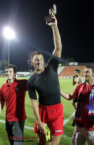 קאלה דרשלר עם גביע השחקן המצטיין של אוהדי הפועל חיפה.