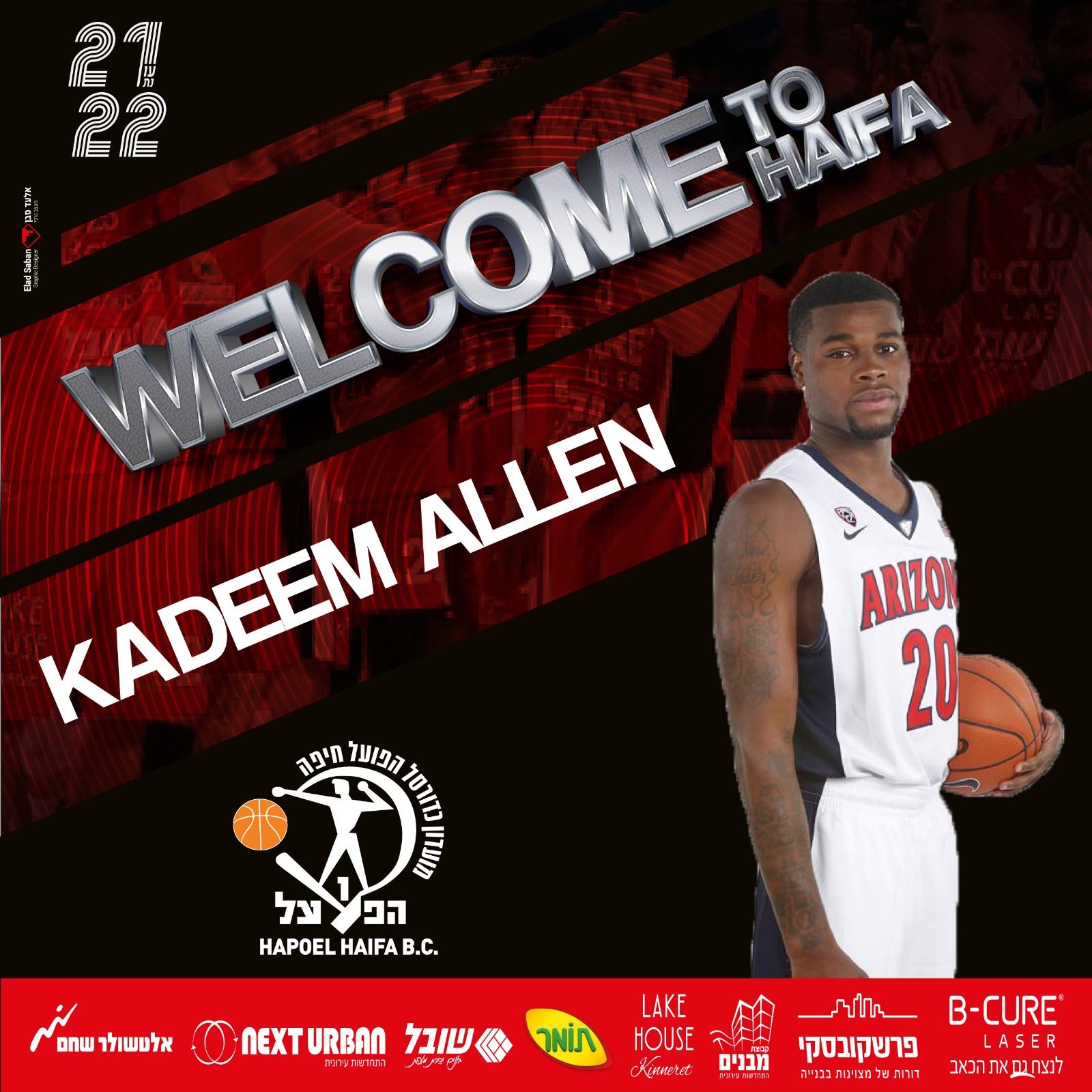 מועדון הכדורסל הפועל בי-קיור לייזר חיפה נרגש להודיע על החתמתו של הגארד קאדים אלן במועדון.