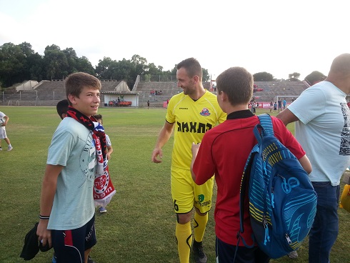 שוער הקבוצה פרמיסל קובאר ומעריצים.