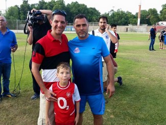 מאמן הקבוצה טל בנין מצטלם עם אוהדי הקבוצה.