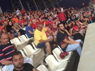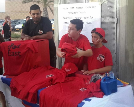 אוהדי הקבוצה מוכרים את החולצות החדשות של היציע המזרחי.