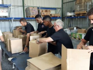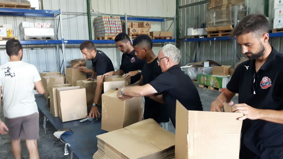 שחקני הקבוצה השתתפו אתמול במבצע הכנת חבילות מזון למשפחות נזקקות.