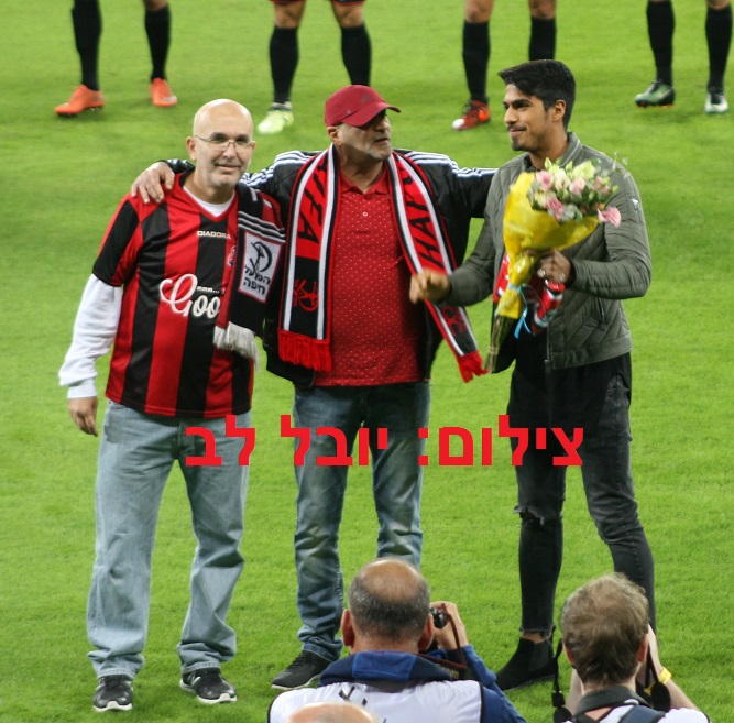 דור פרץ, זכה לפרחים מנציגי האוהדים. (צילומים: יובל לב)