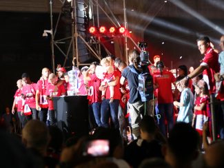הפועל חיפה חגגה הערב עם אוהדיה את הנפת הגביע באירוע חגיגי בנמל חיפה. המאמן ניר קלינגר שר עם אוהדי הקבוצה.