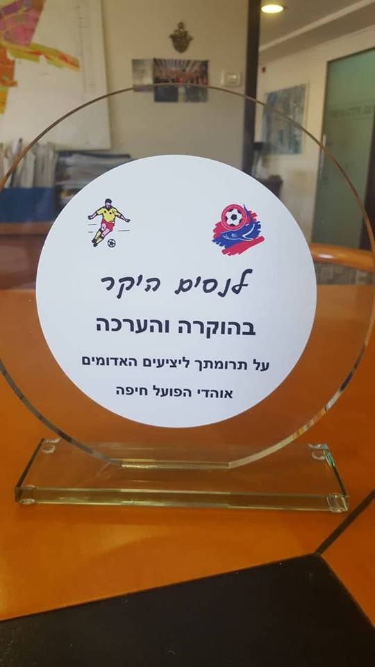 מגן הוקרה לאיש העסקים ואוהד הפועל חיפה ניסים ביליה, אשר עזר' תרם ומסייע רבות