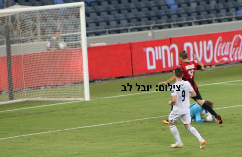 דקה 6 – דור מלול בדאבל פס מצויין מוצא את פלקושצ'נקו על סף הרחבה, שבועט לפינה השמאלית של השער, אך השוער האורח במקום.