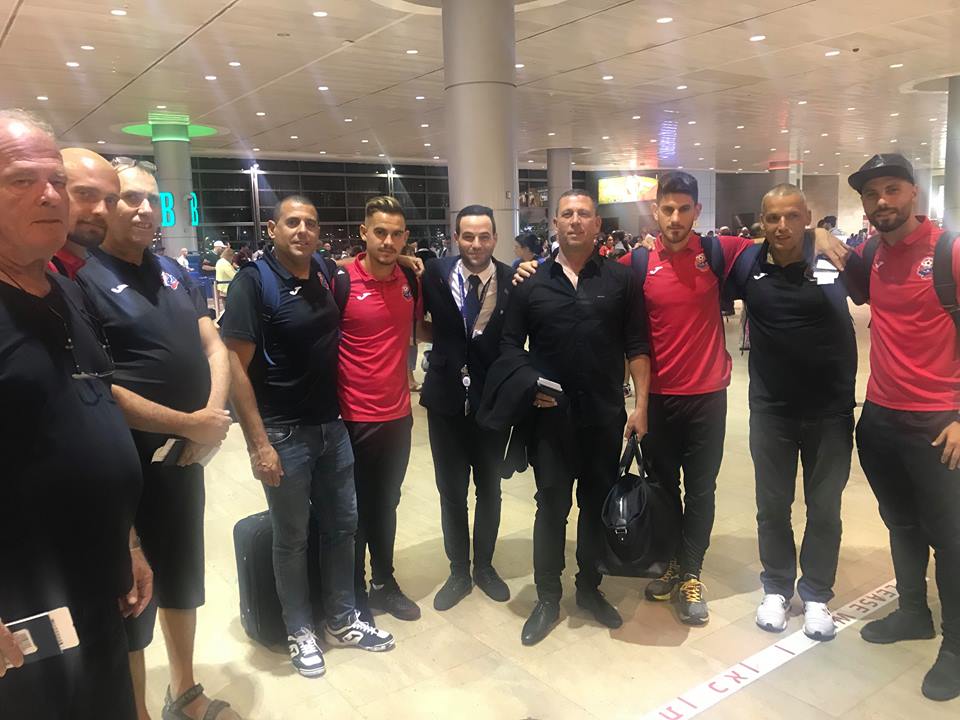 שחקני הפועל חיפה לפני העלייה למטוס. (צילום: יונתן הוכמן)