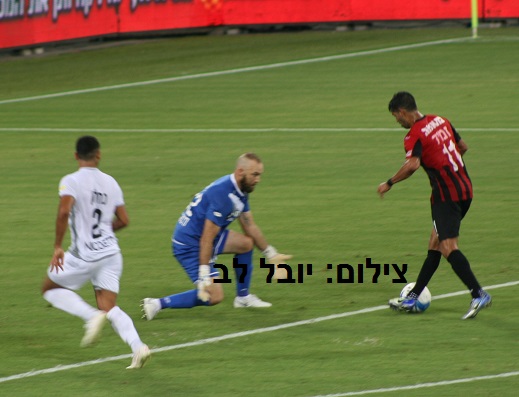 דקה 2 – דור מלול מגביה כדור ארוך מימין לרחבה. פלקושצ'נקו מתמקם בעומק הרחבה ונוגח למסגרת. השוער האורח לוקח את הכדור.