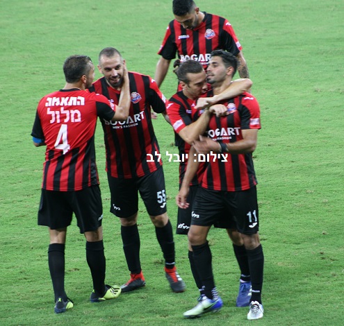 פלקושצ'נקו חוגג עם זמיר לאחר עוד שער מוצלח. (צילום: יובל לב)