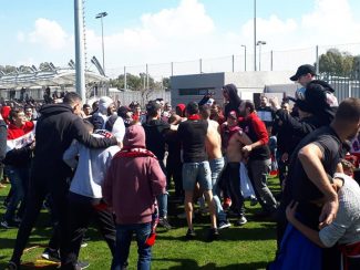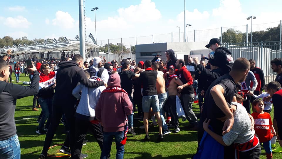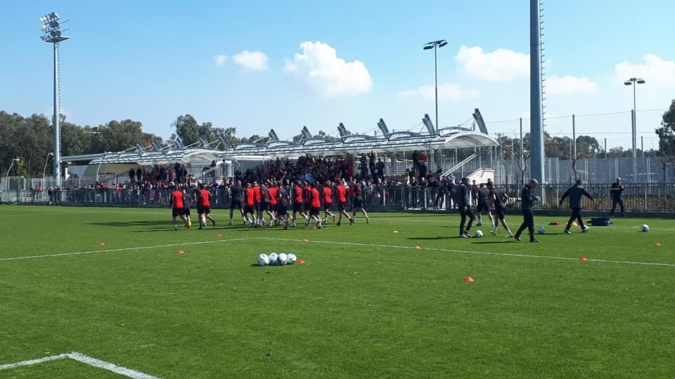 הקהל קיבל את השחקנים בשירי עידוד שנמשכו לאורך כל האימון. במהלך האימון נכנס הקהל למגרש למשך מספר דקות והניף את השחקנים על הכתפיים.