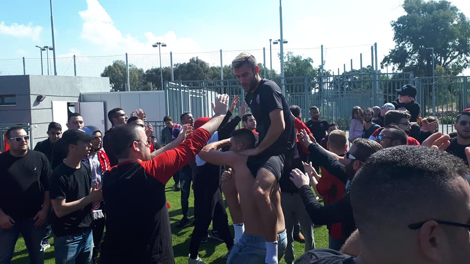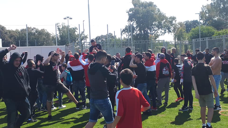 הבוקר הגיעו כ- 300 מאוהדי הפועל חיפה למתחם האימונים בבית נגלר, כדי לעודד את השחקנים לקראת משחק הדרבי