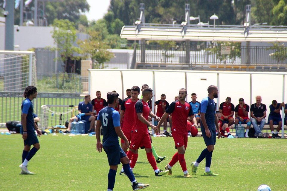 שחקני הפועל חיפה במשחק האימון נגד הפועל עכו. (צילום: משה כהן)